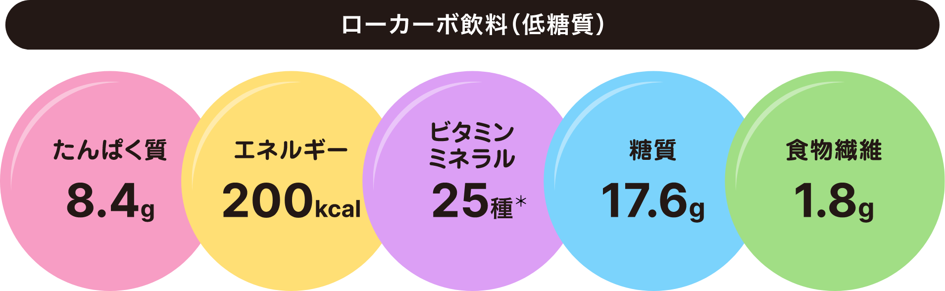 | 原材料名 | なたね油(国内製造)、高オレイン酸ひまわり油、難消化性デキストリン、デキストリン、イソマルツロース、果糖、分離大豆たんぱく、フラクトオリゴ糖、カゼインCa(乳成分を含む)、燕麦繊維、塩化Na、ブドウ糖、L-カルニチン、中鎖脂肪酸油/カゼインNa(乳由来)、グリセリン、乳化剤(植物レシチン:大豆由来)、クエン酸Na、塩化K、myo-イノシトール、クエン酸Ca、炭酸Ca、リン酸Mg、塩化Mg、リン酸K、安定剤(カラギーナン、ジェランガム)、V.C、クエン酸K、グルコン酸亜鉛、硫酸鉄、V.E、ナイアシン、グルコン酸銅、パントテン酸Ca、V.A、V.B₆、V.B₁、V.B₂、葉酸、ビオチン、V.D、V.B₁₂ |